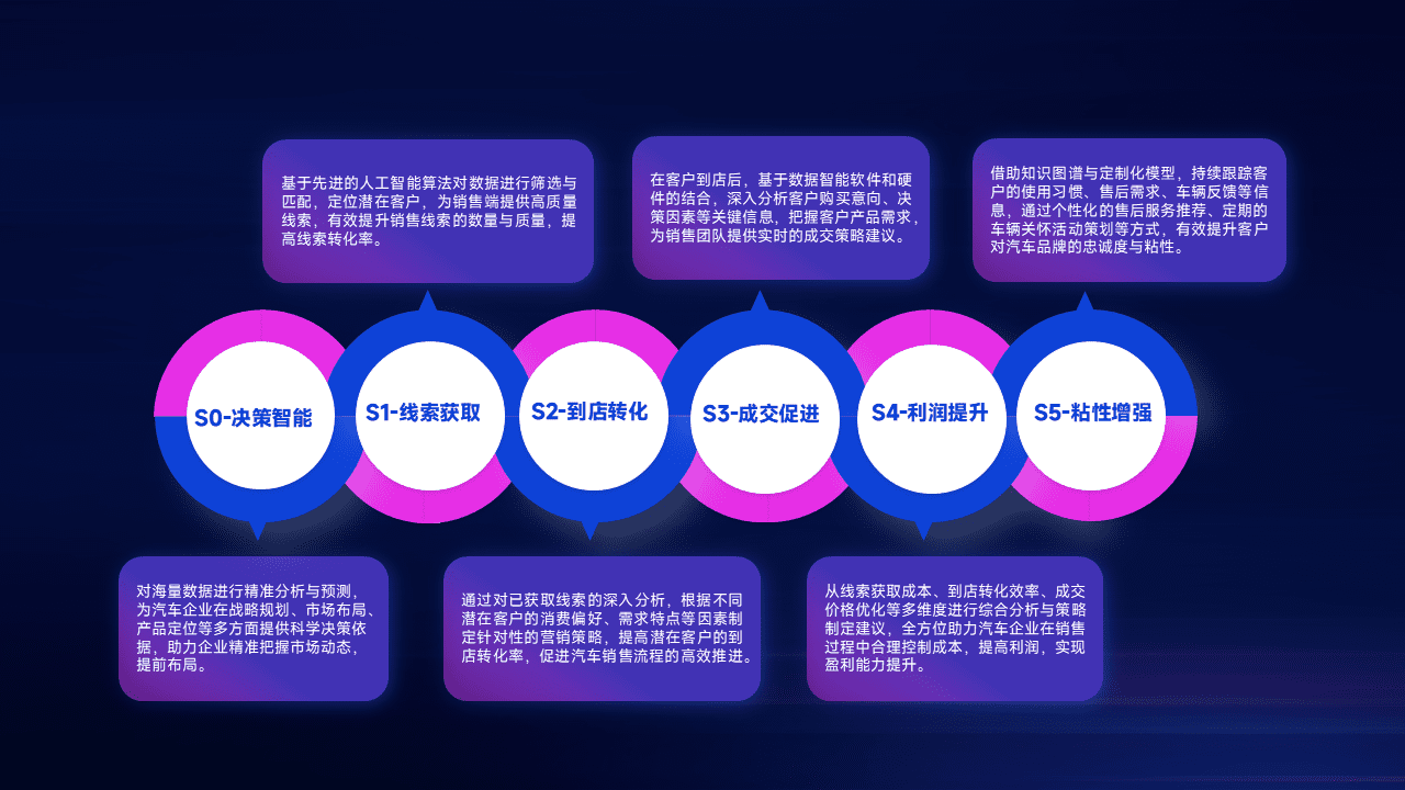 通过拓宽潜在客户来源、、优化线索分配并提高到店转化率,,,以增强销售效率。。同时,,利用线索数据不断优化分析模型,,,有效提升转化率,,扩大营销影响力。。。。